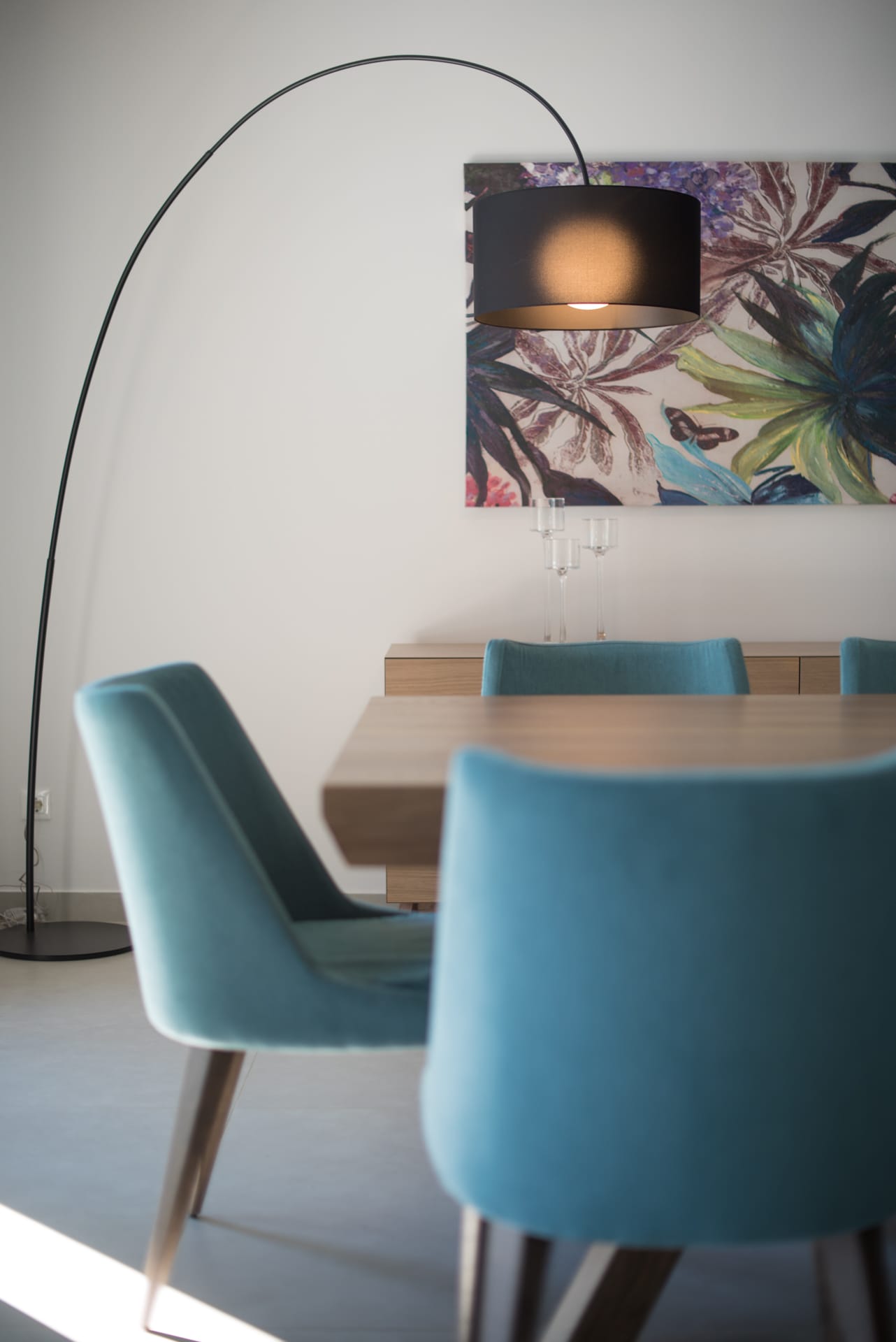 🛋️ Living & Dining Area: Open-plan design with French doors leading to the balcony and infinity pool.