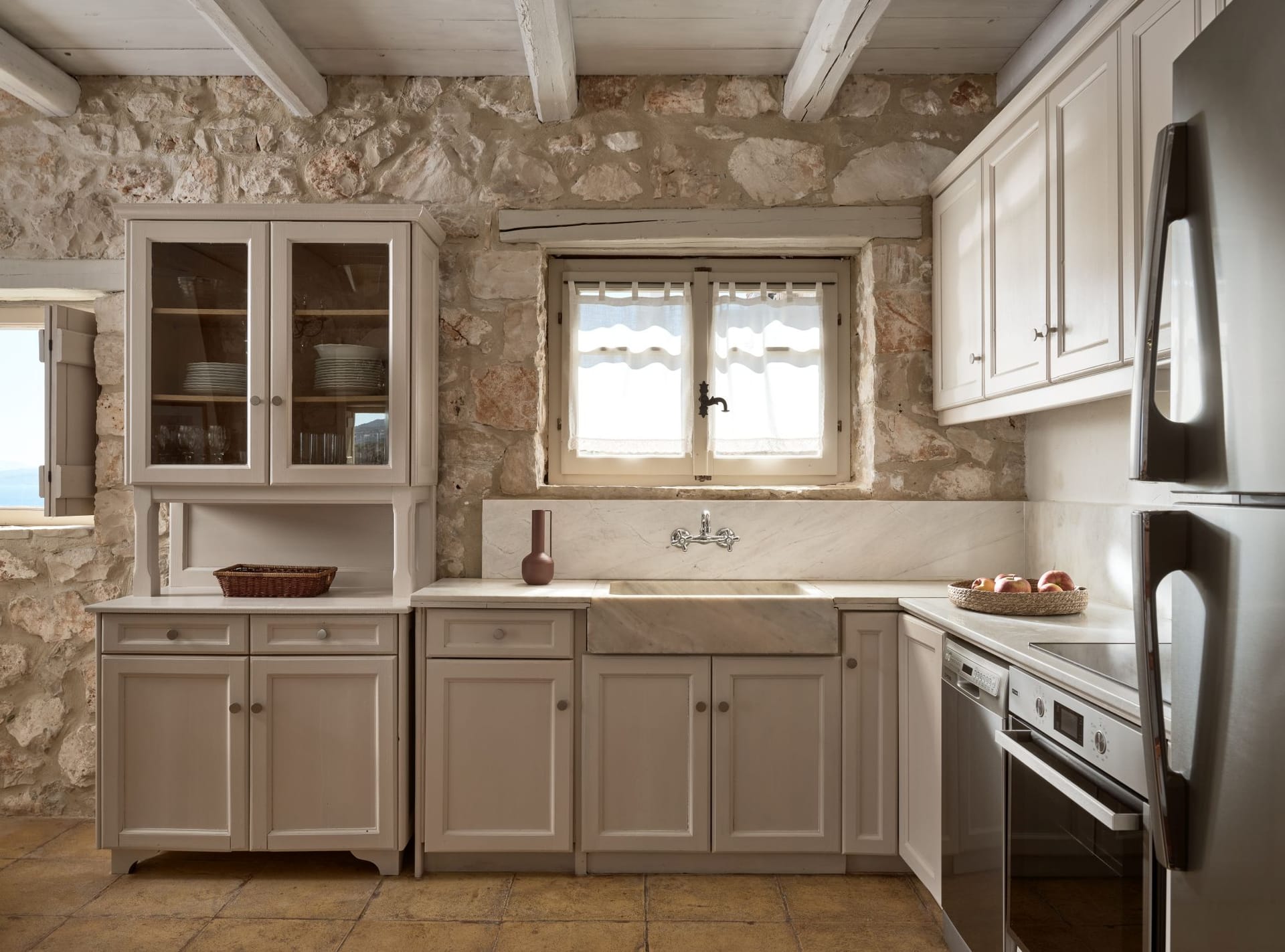 Originally built in 2008 as part of an exclusive four-villa complex, Villa Thelgo 1 underwent a meticulous renovation in 2020. The refurbishments preserved its traditional Mykonian charm with whitewashed walls, curved lines, wooden beams, and built-in furniture, while adding modern comforts. Marble floors, sunken baths, and a seamless blend of form and function create an inviting retreat for couples, families, or groups of friends.