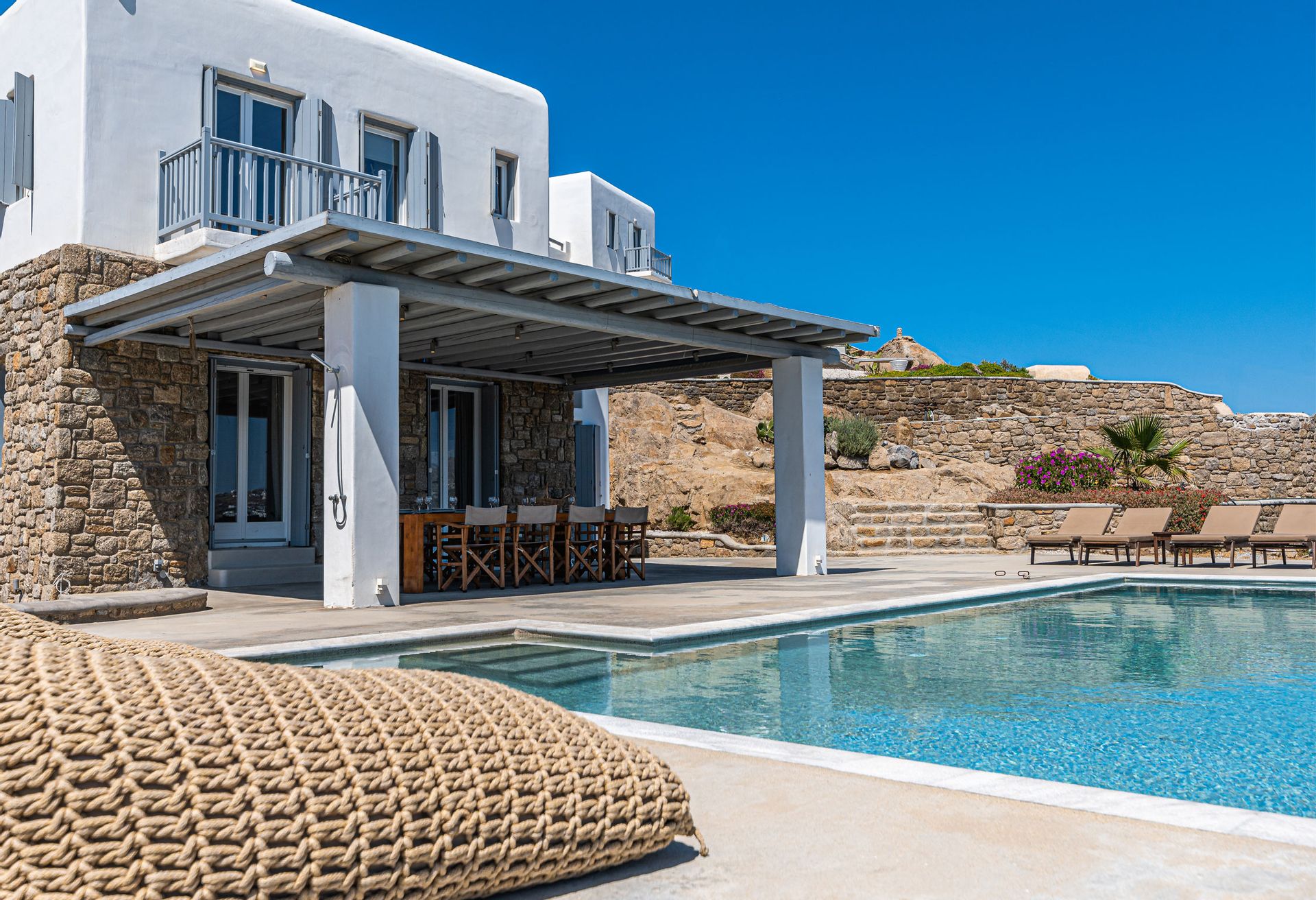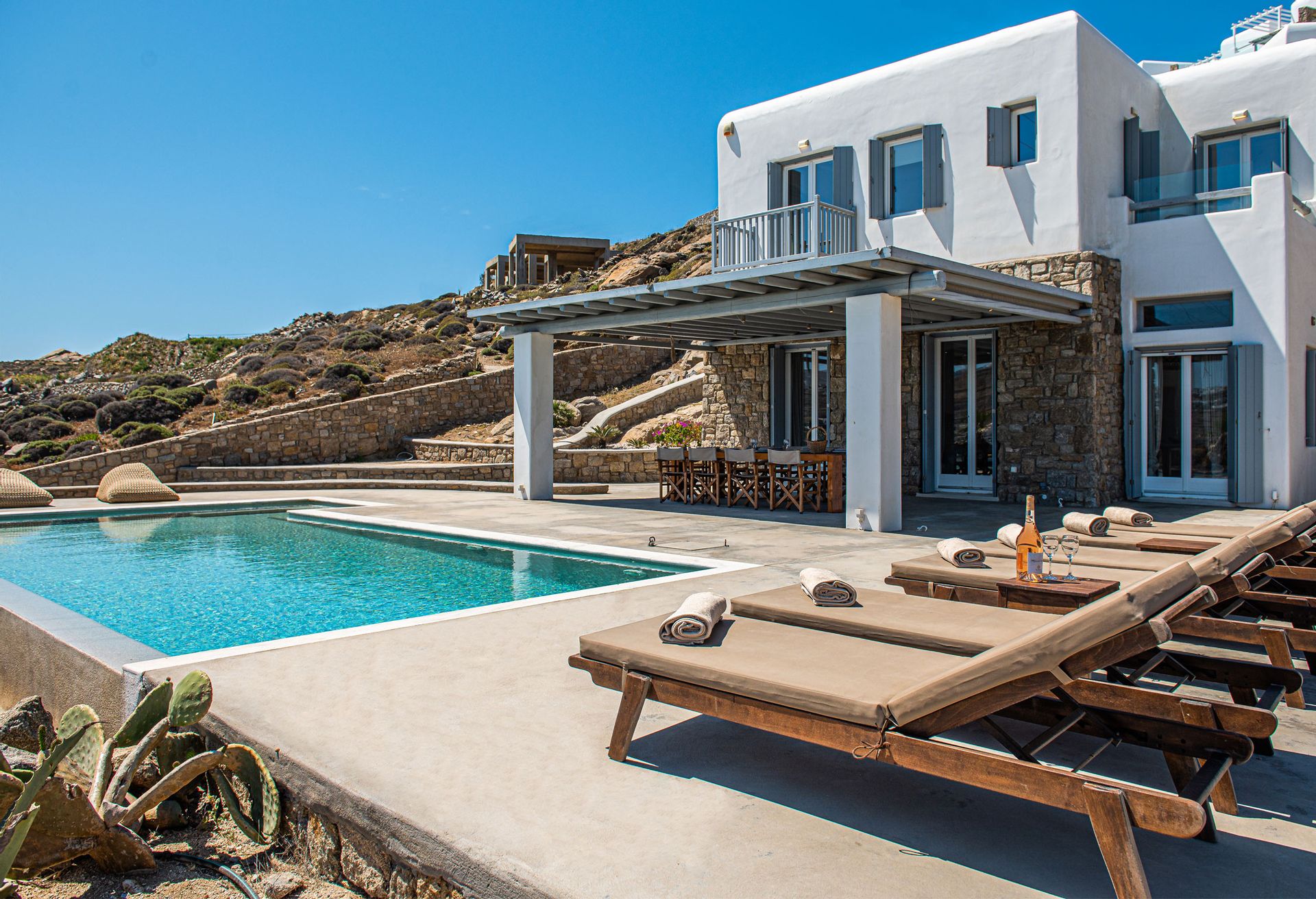Inside, the villa is anything but spartan. Completely refurbished from the ground up, it boasts of everything modern. There are five bedrooms that can accommodate ten people for the night. There is a private terrace on which you can enjoy the sea breeze of the Aegean. Outdoors, there is a wonderful swimming pool that you can soak up in. This is better than going for a swim in the sea – you can enjoy freshly-prepared food and drinks here. The kitchen is fully-equipped and the fridge well-stocked when you arrive. If you need anything, a personal concierge stands ready 24/7 to see to all your requests.