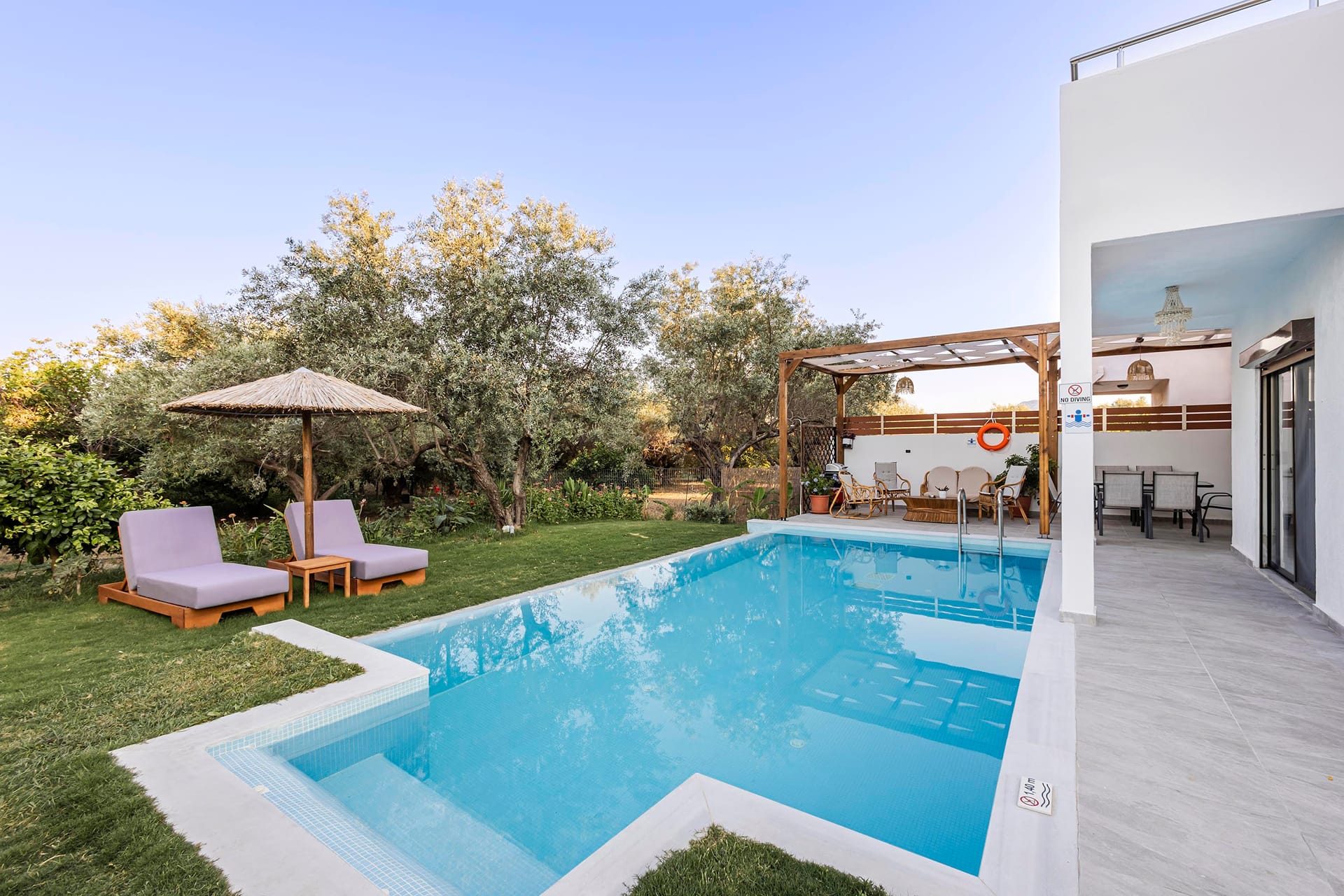The amenities within the villa make it feel like a true home from home with little touches such as a hairdryer, soft bathrobes, slippers and luxury toiletries all adding to the experience. Moreover the newly built private pool adds another touch of luxury and comfort.