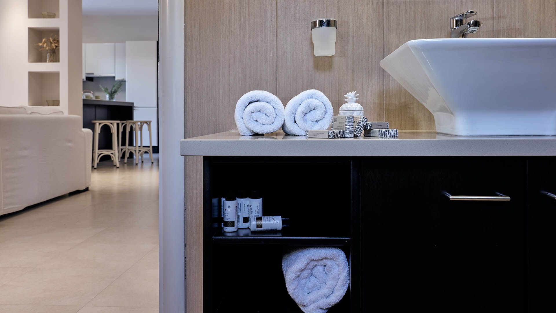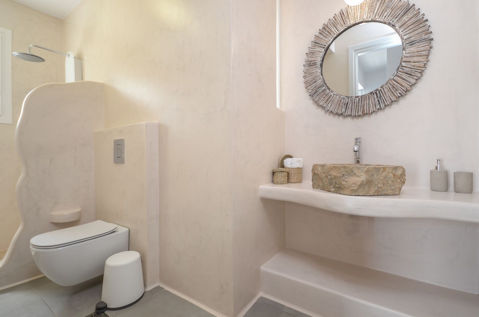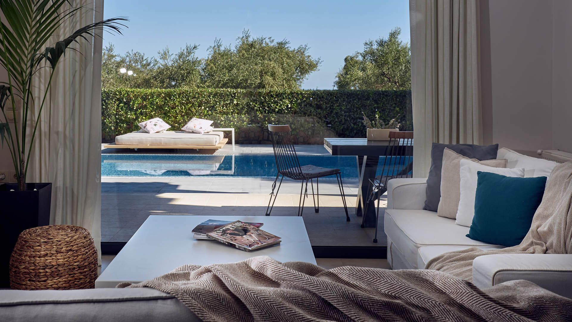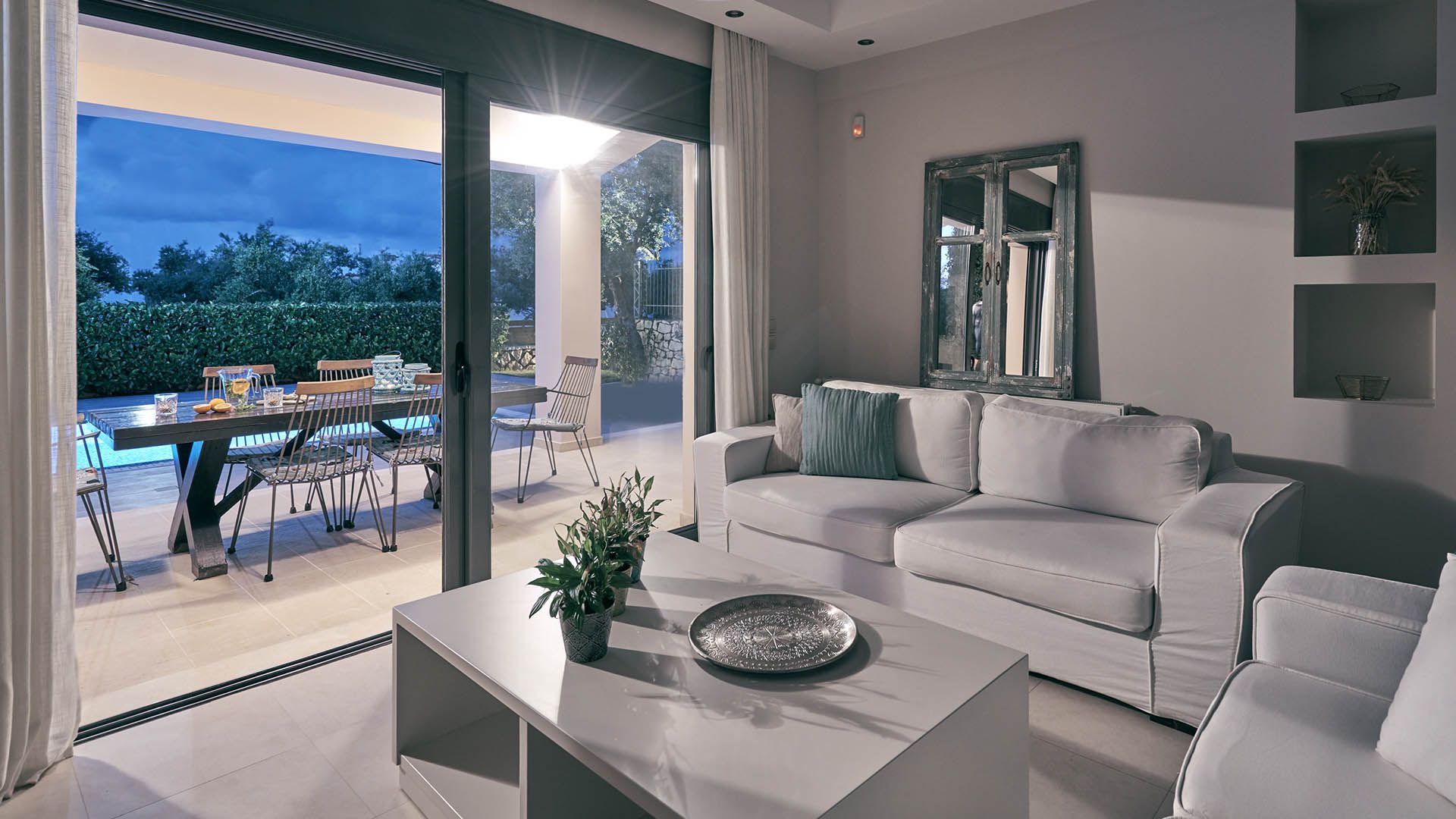 The two floors of the villa house a total of three spacious bedrooms, comfortable living areas, strategically placed dining room and a premium kitchen perfect for churning up sumptuous meals for your family and friends. Thanks to the massive glass windows extending from the floor up to the ceiling, you can enjoy uninterrupted views of the breathtaking Ionian and the dreamy countryside from every nook and cranny of the villa indoors.