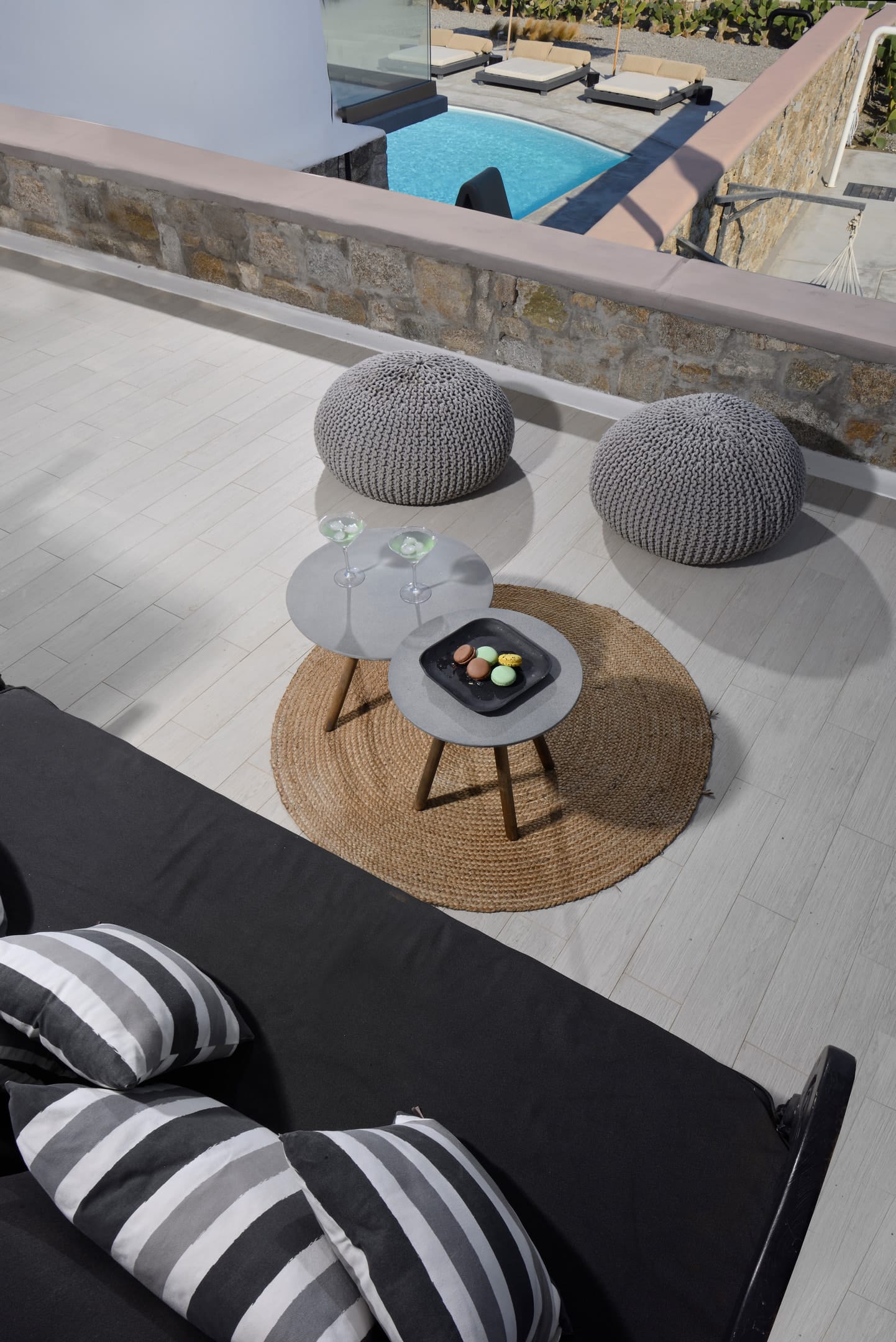 A 10min drive will get you in the middle of everything in the famous socialite and vibrant life in the old town of Mykonos, a 12 min drive to the famous beach of Psarrou and a 5 minutes drive to Ornos beach.