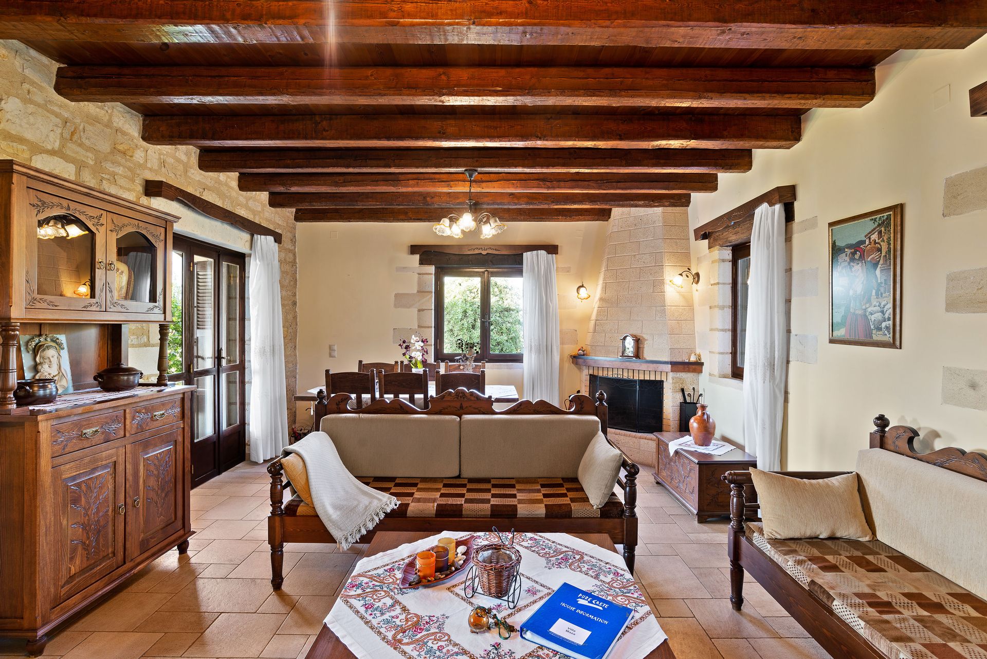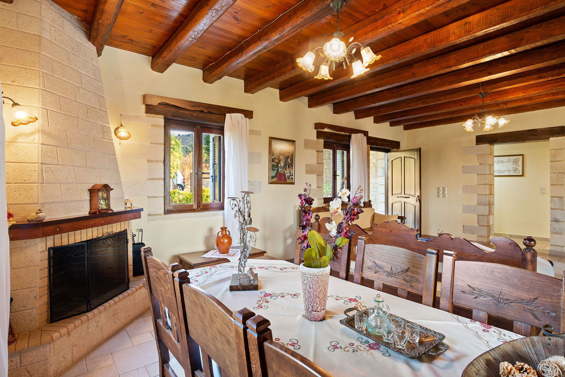 Grande Suite with king bed , en-suite bathroom Jacuzzi &ham am , kitchen , living room with fireplace and sofas/TV satellite Dolby DVD.