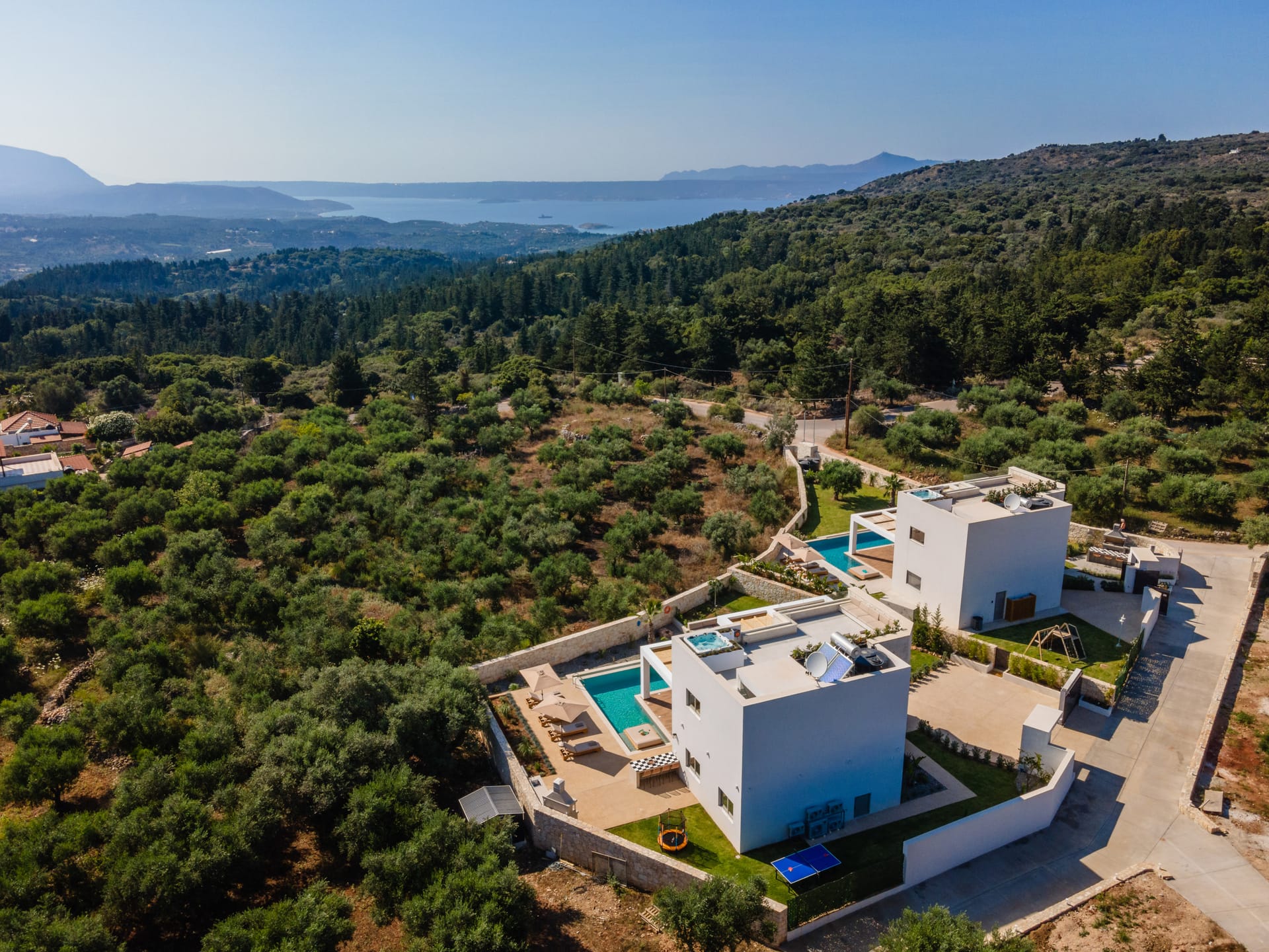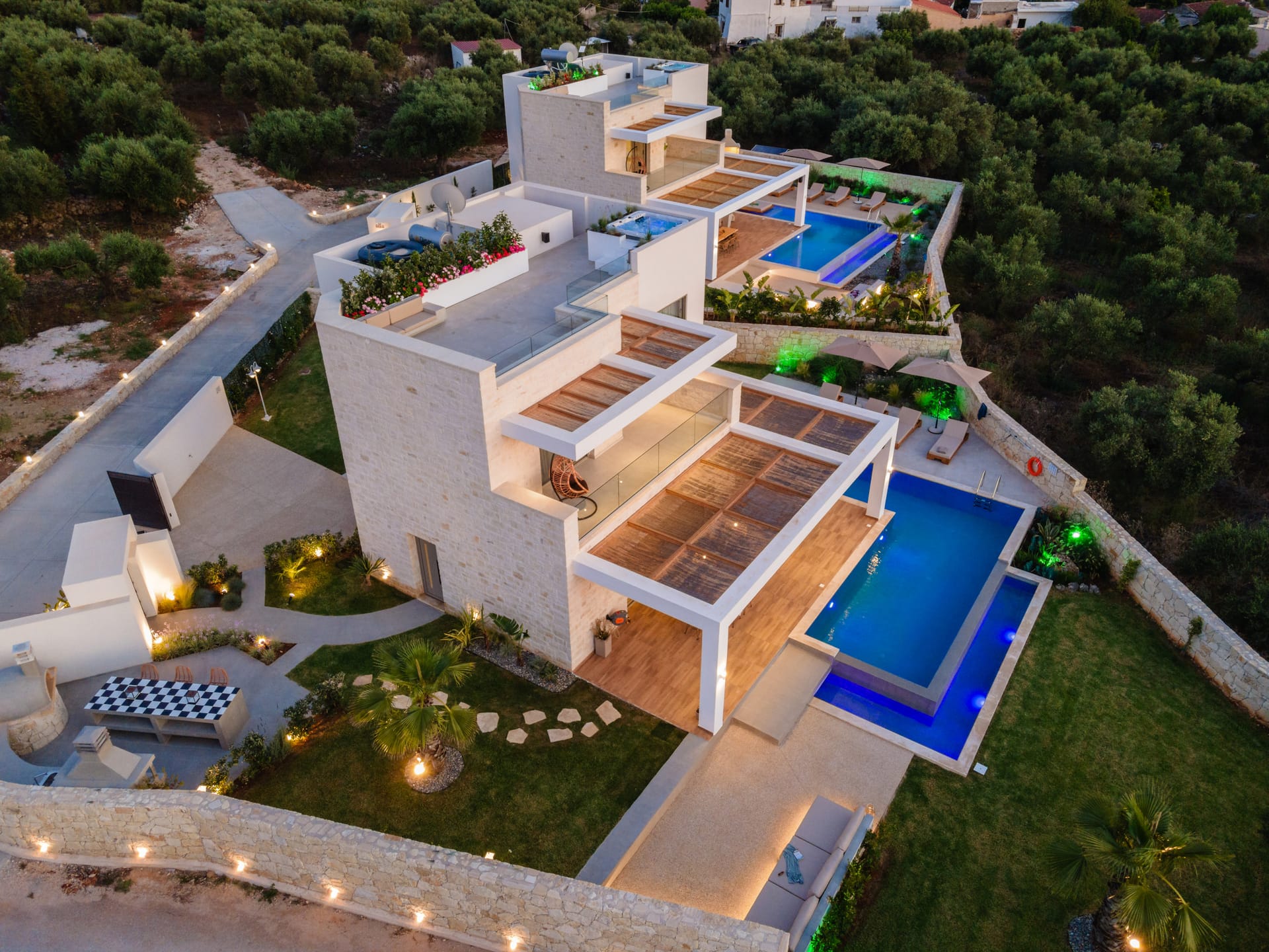 Adjacent to the pool area, a separate seating area with wooden pergola invites you to savor al fresco meals or simply enjoy the tranquil ambiance with a refreshing drink in hand. As you relax, take in the breathtaking views of the surrounding olive groves, offering a serene backdrop to your stay.