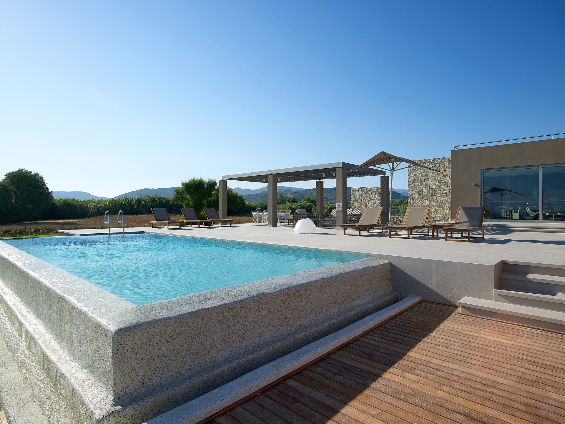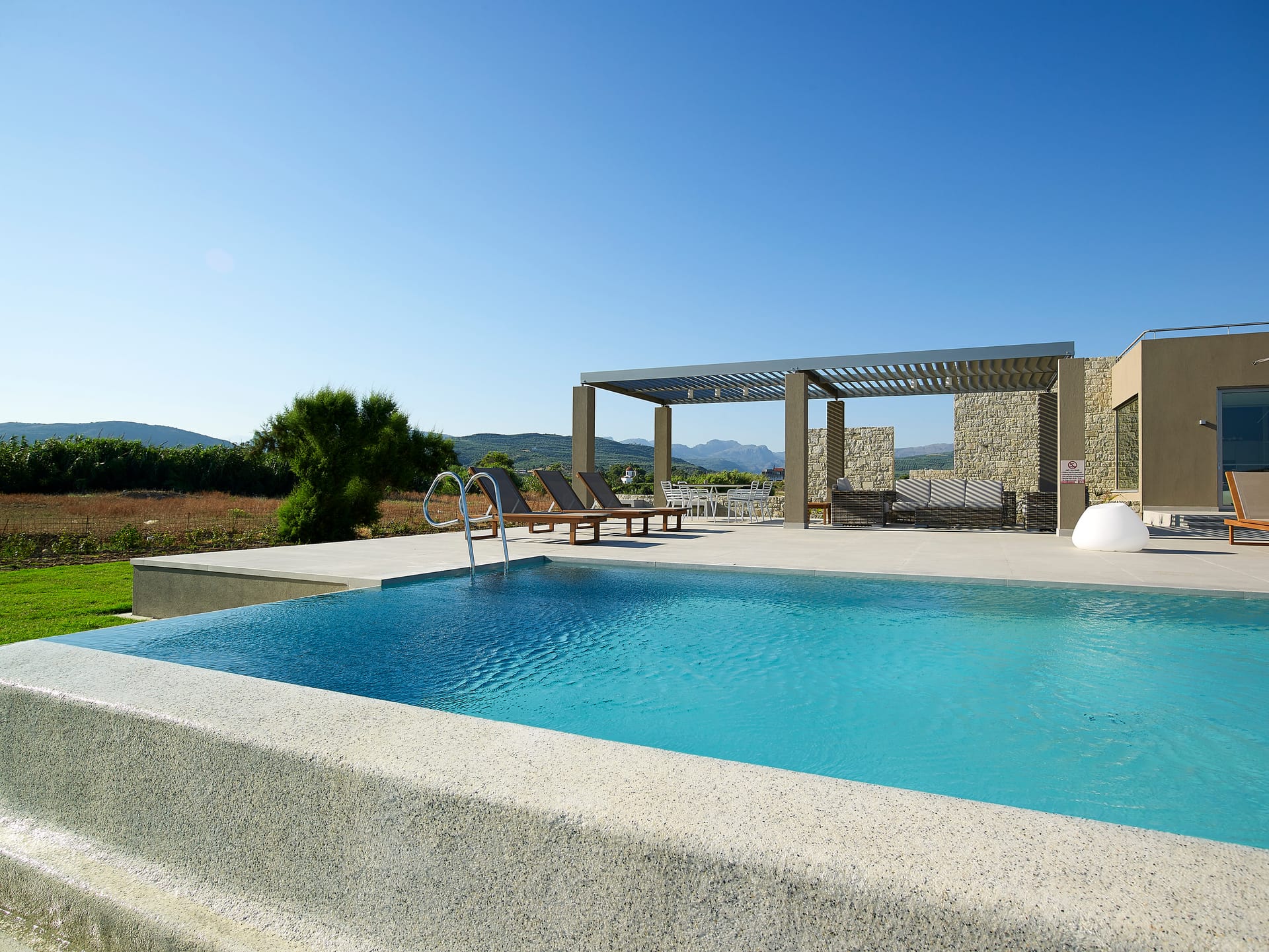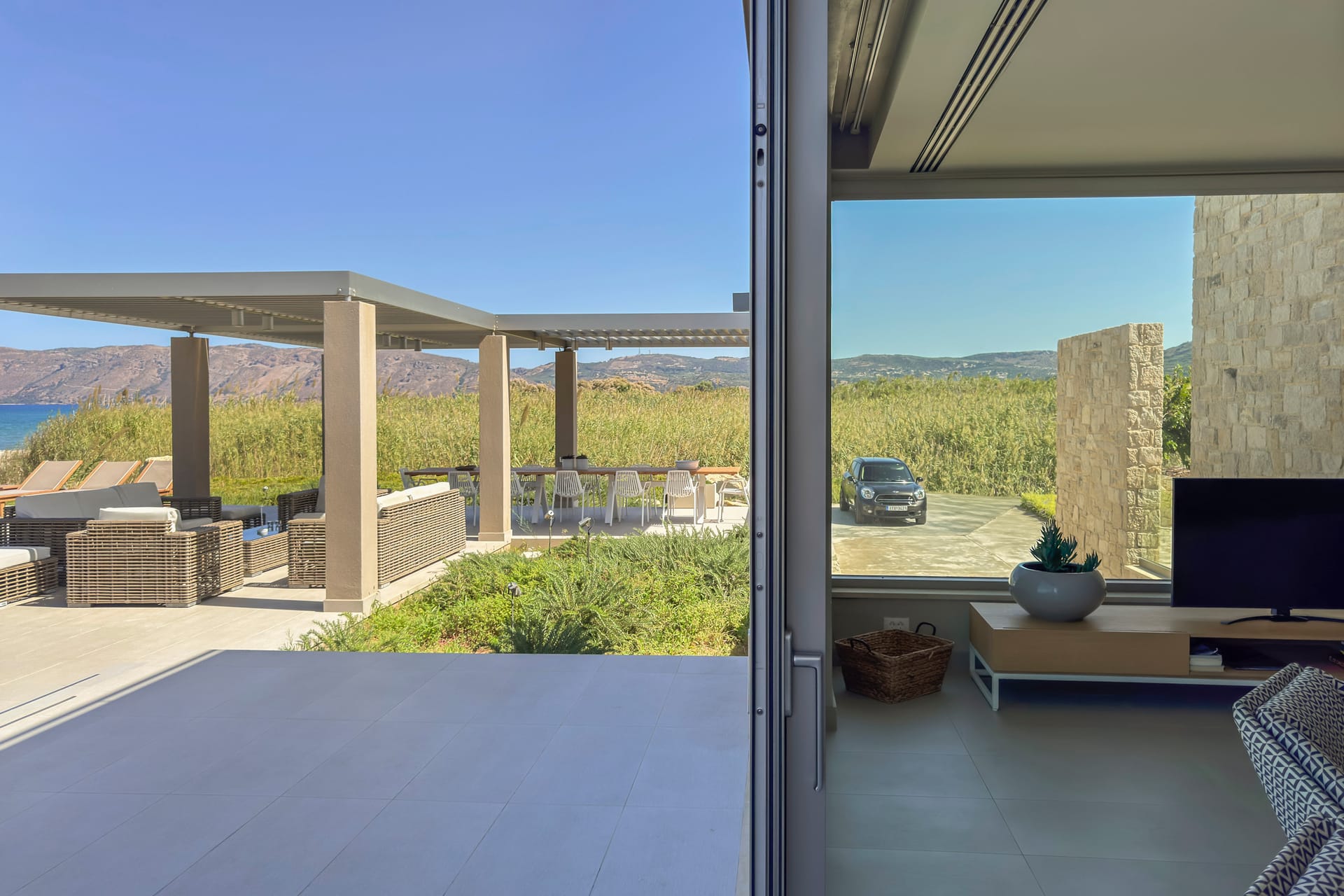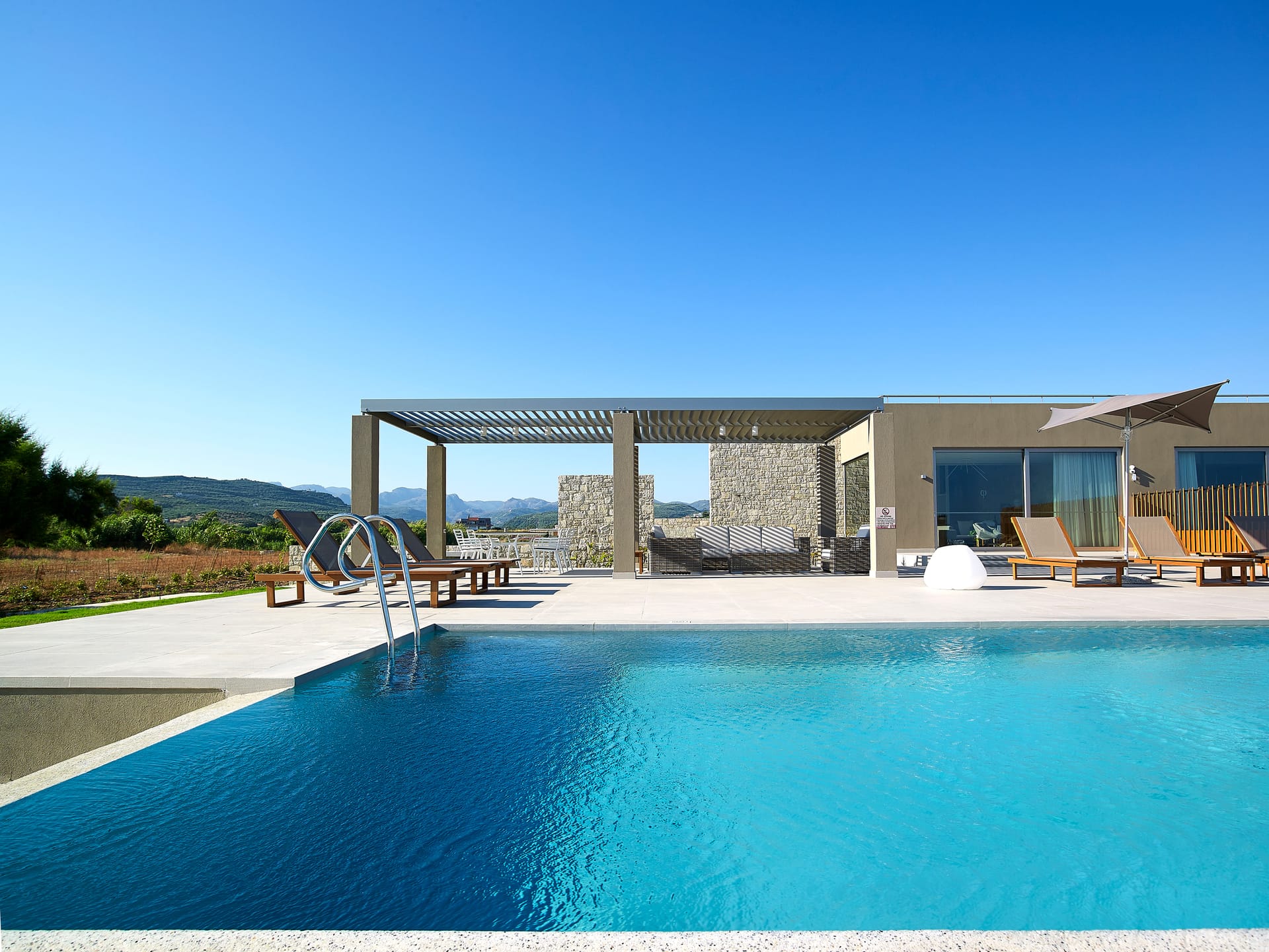 Located overlooking Kissamos Bay and just a few metres from the water’s edge, this is the largest of our two beachfront villas with a spacious kitchen and an innovative ‘hanging island’ dining table.