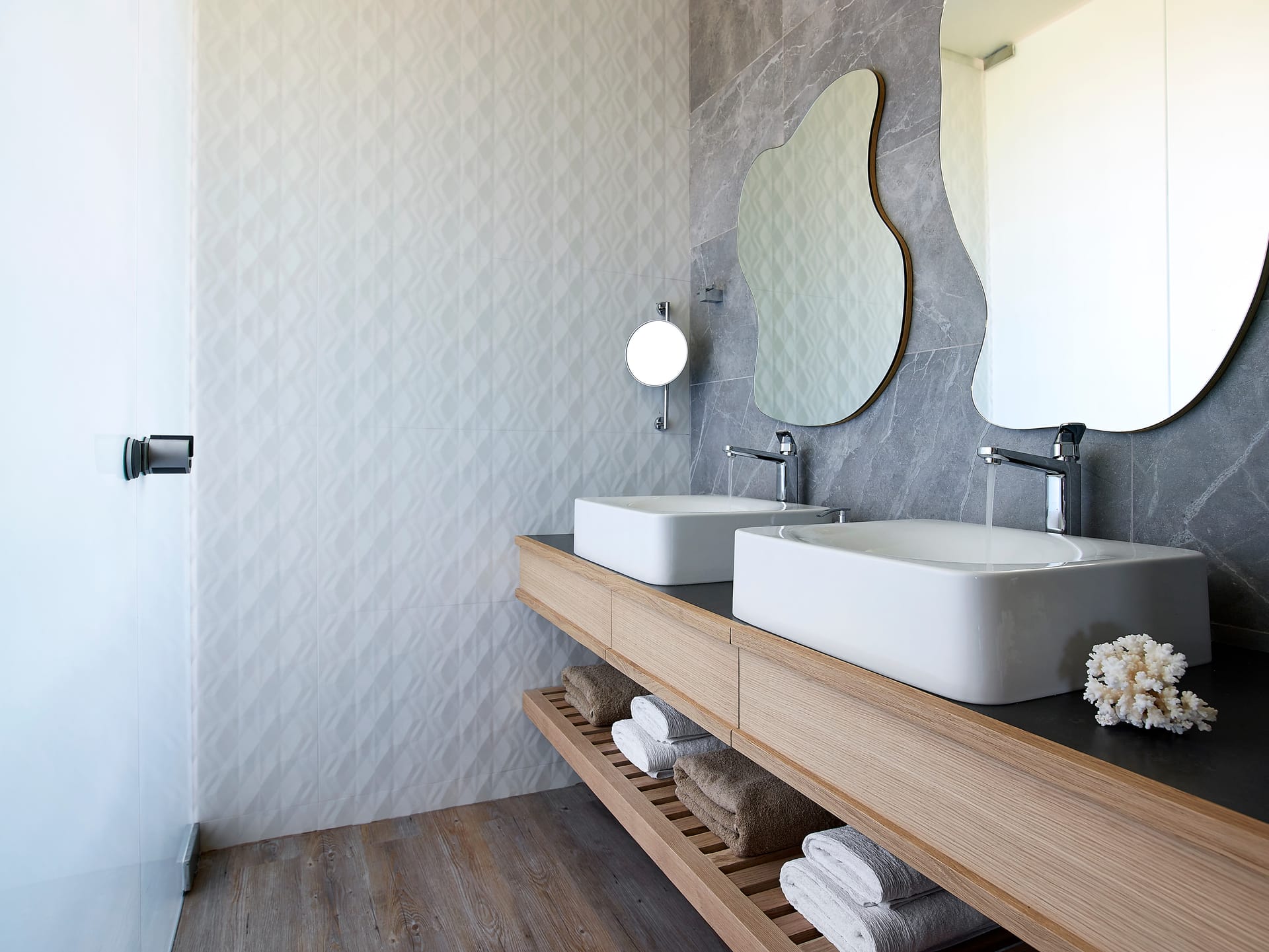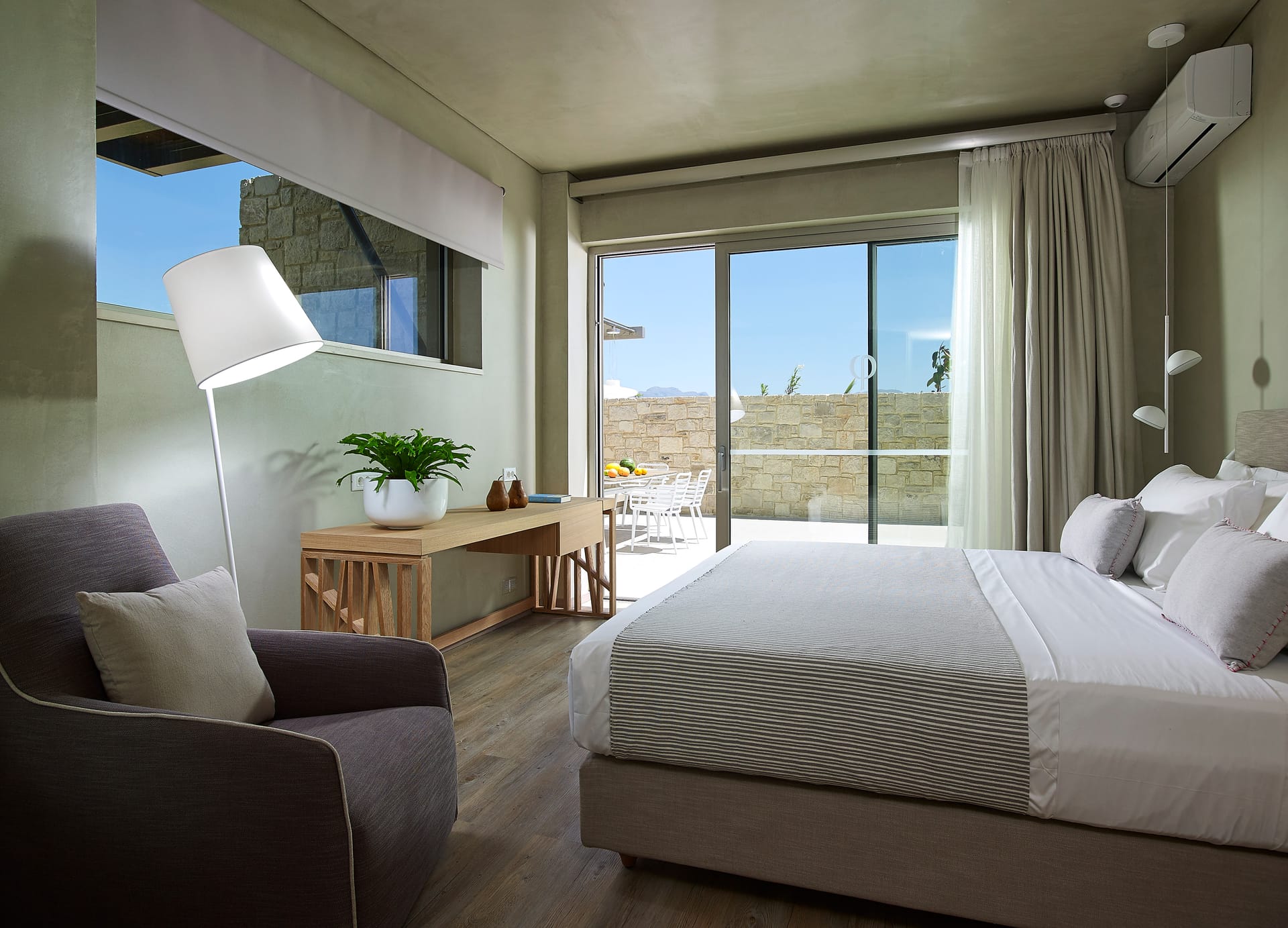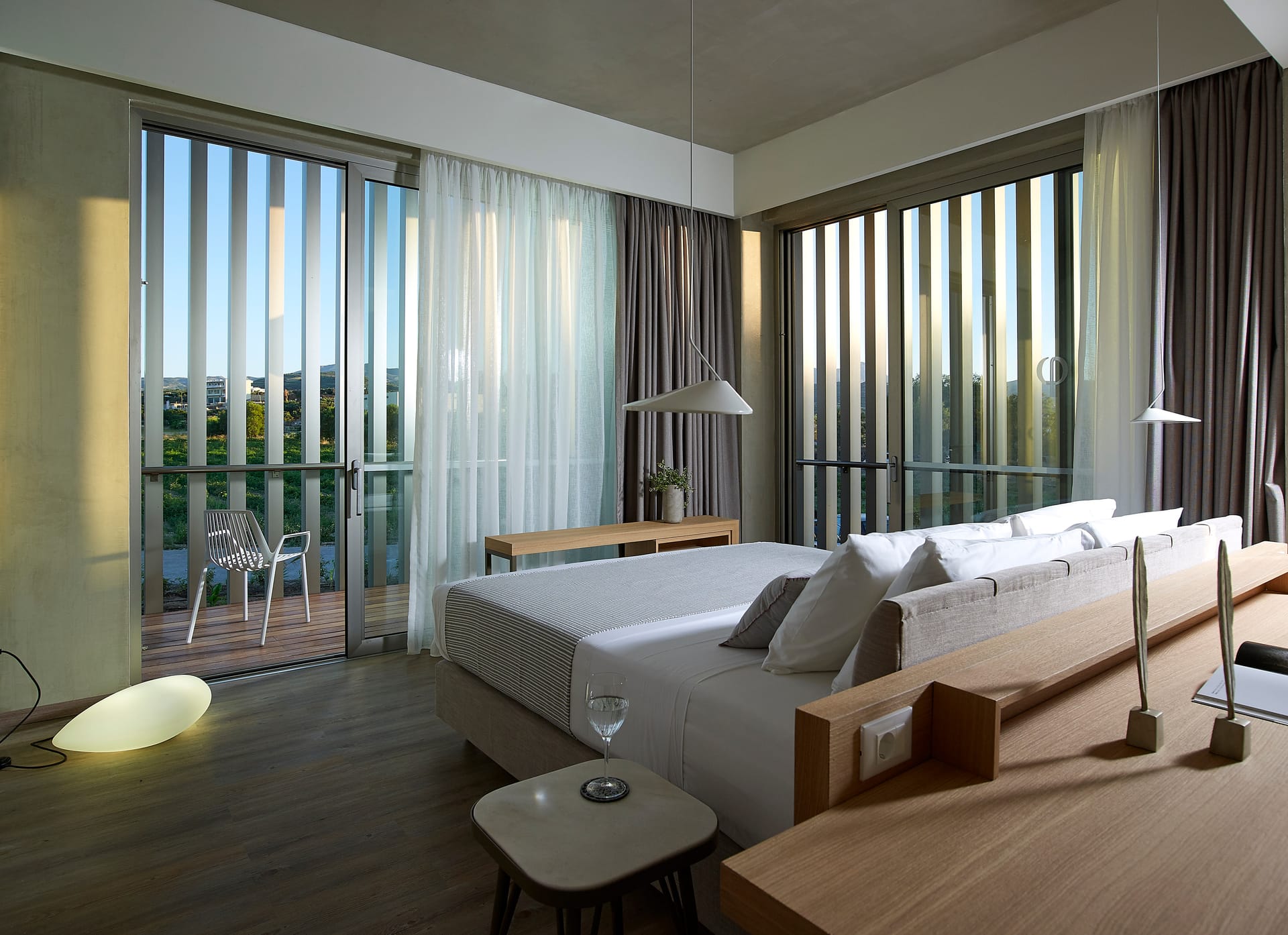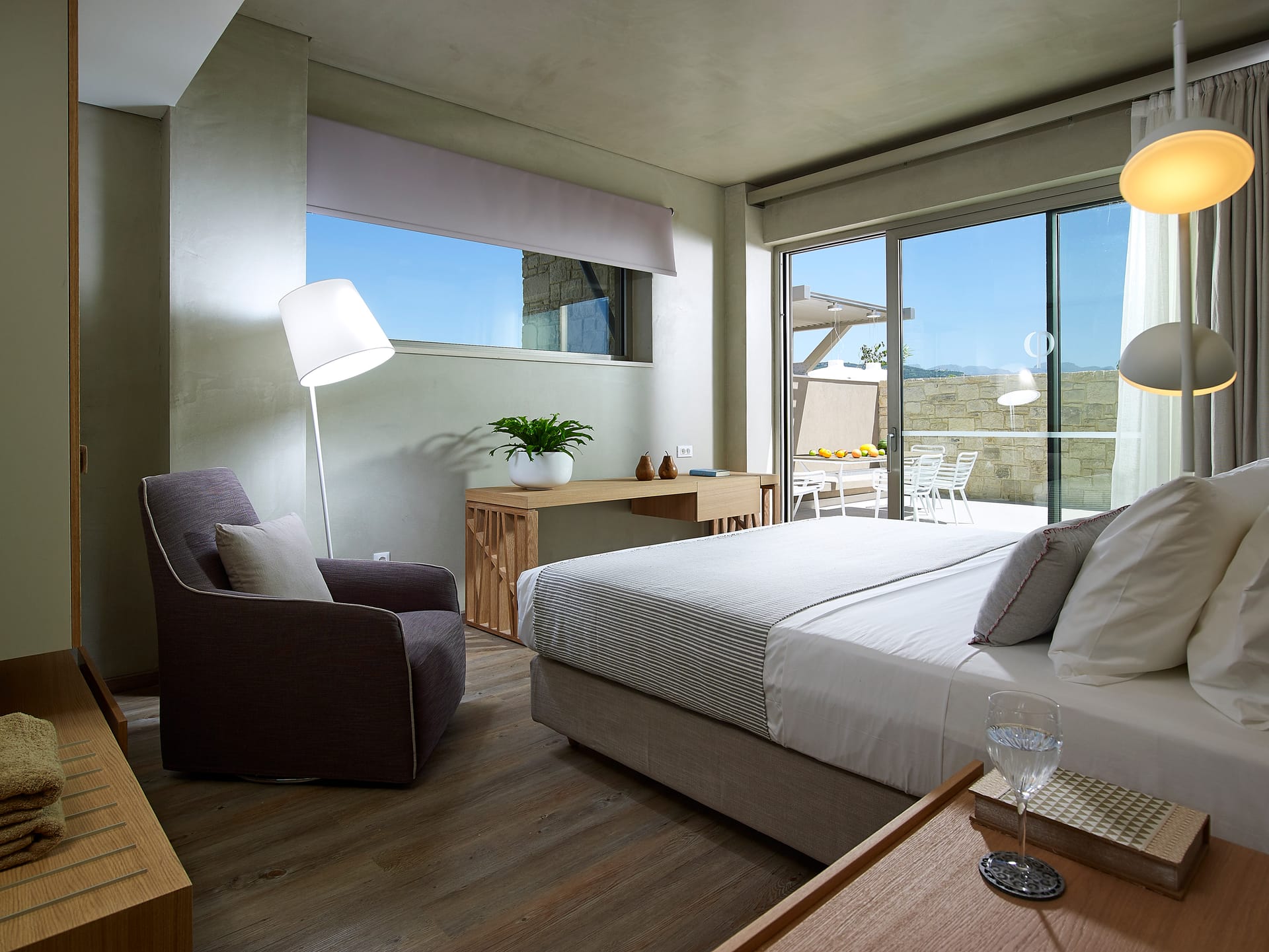 Bedrooms are light and stylish with soft wooden flooring and offer uninterrupted views, with balconies shaded from the Mediterranean sun by ‘sails’.